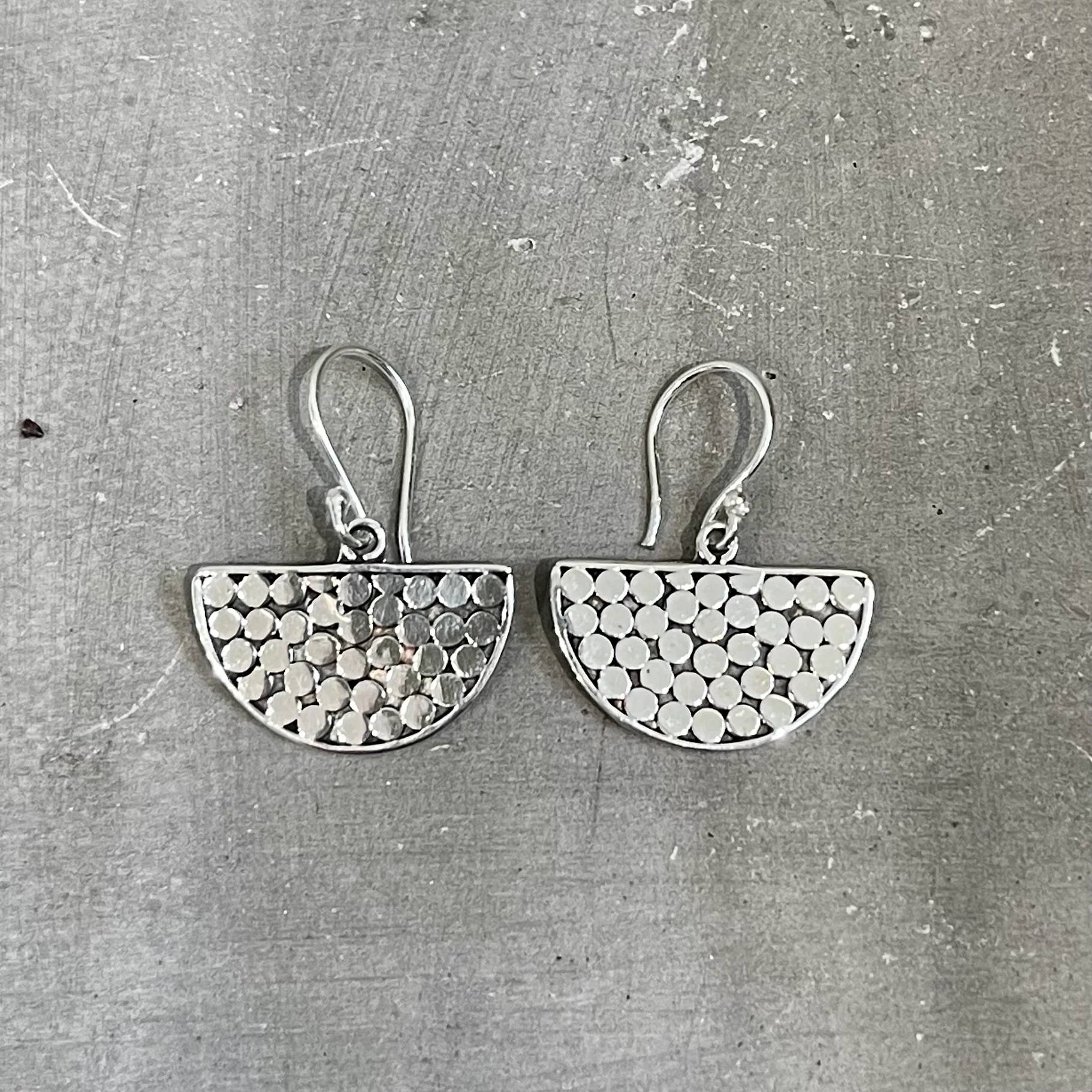 Sterling Silver Dot Design Half Circle Earrings